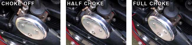 The engine usually starts easily, but in cold weather it's a good idea to fully twist the throttle two or three times. This will cause the accelerator pump to give some extra shots of petrol.