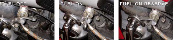 Fuel tap positions: OFF, ON, ON (RESERVE)